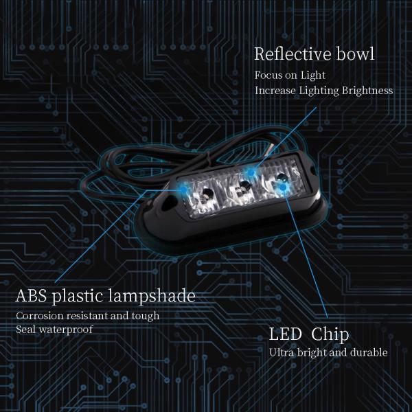 12V 24V LED Warning Light Accessories Emergency Strobe Warning Lamp 3SMD for Car Truck